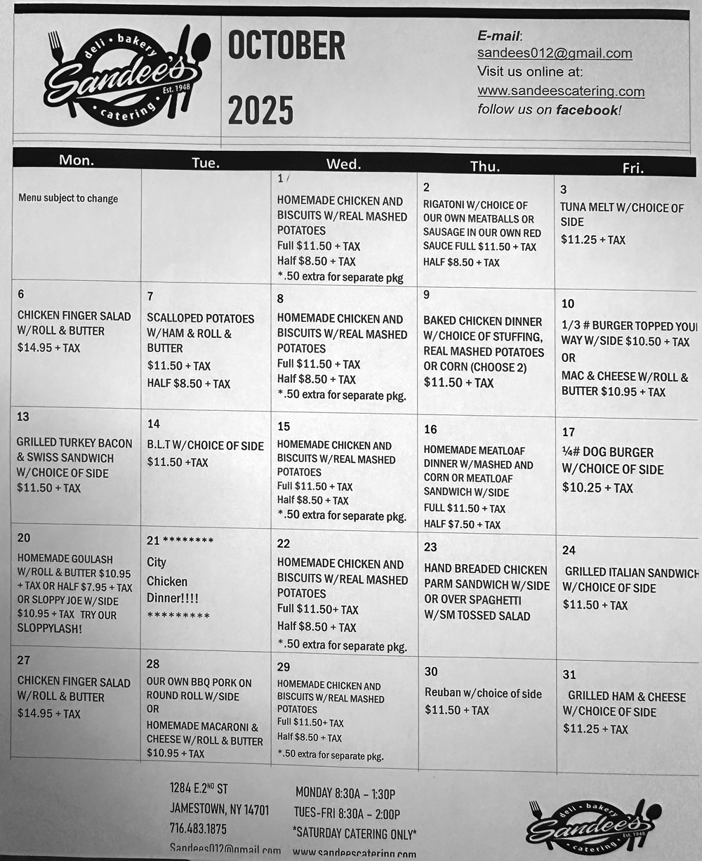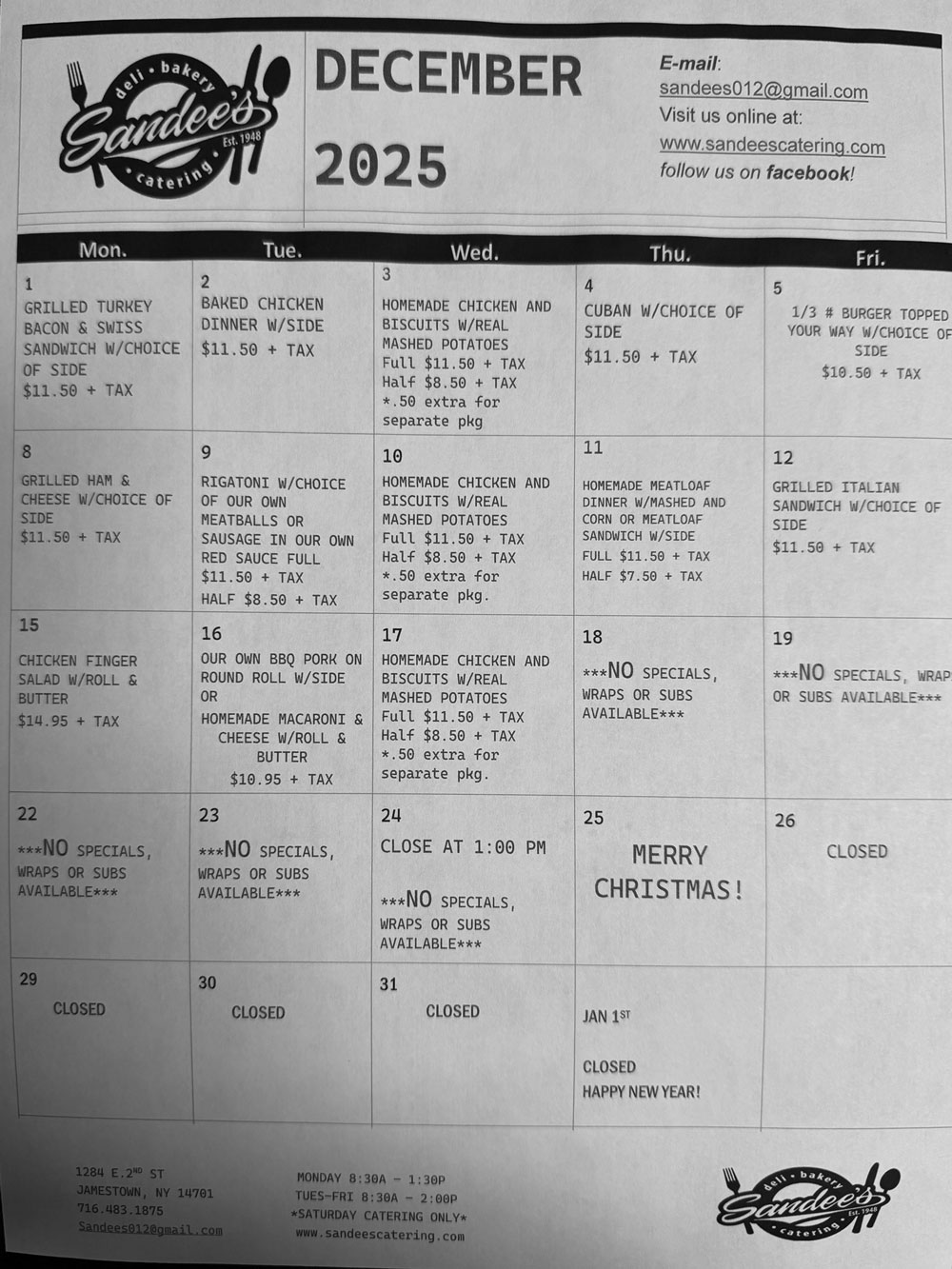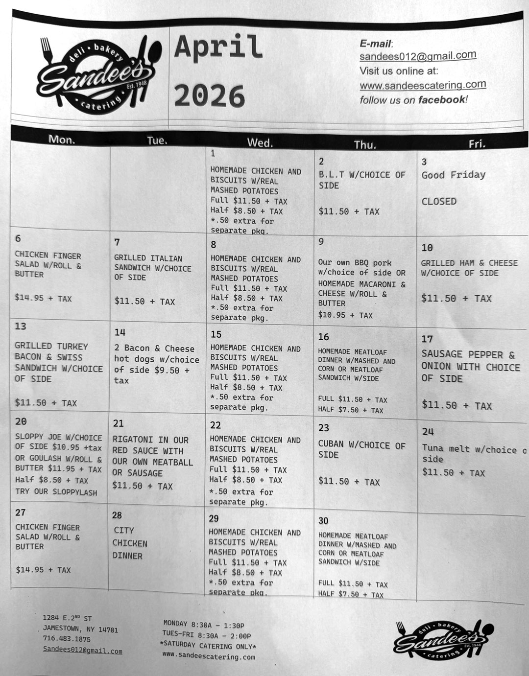 These specials are in addition to our full service deli items - subs, wraps, and sandwiches (made your way) are always available!